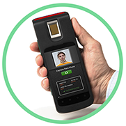 - اجهزة متخصصة محمولة أو ثابتة للتأكد من صحة البطاقة و الشخص بواسطة مطابقة البصمات
